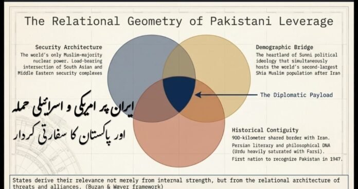 اسی طرح ایران کے ساتھ 900 کلومیٹر طویل سرحد اور پاکستان میں دنیا کی دوسری بڑی شعیہ آبادی کے ساتھ پاکستان کی معاشرتی ساخت کچھ ایسی ہے کہ پاکستان ایران پے کیے گئے حملے سے لاتعلق نہیں رہ سکتا۔ ایران نے بھی ان تعلقات کی حساسیت کو سمجھتے ہوئے پاکستان کی پیش رفت کا مثبت جواب دیتے ہوئے پانچ نکاتی جوابی منصوبہ پیش کیا حالانکہ اس جنگ میں فی الحال ایرانی پالسی براہ راست مذاکرات سے گریز کی رہی ہے۔